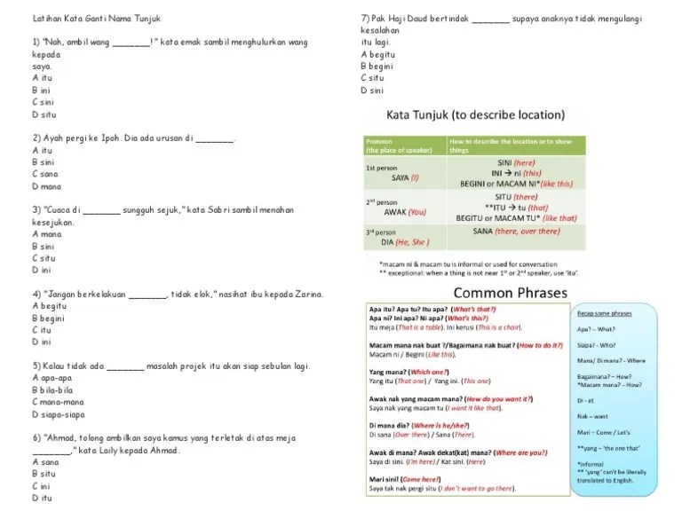 You can do the exercises online or download the worksheet as pdf. Latihan kata ganti nama tunjuk dan tempat guru. Salin ayat di bawah dan isi tempat kosong dengan kata ganti .